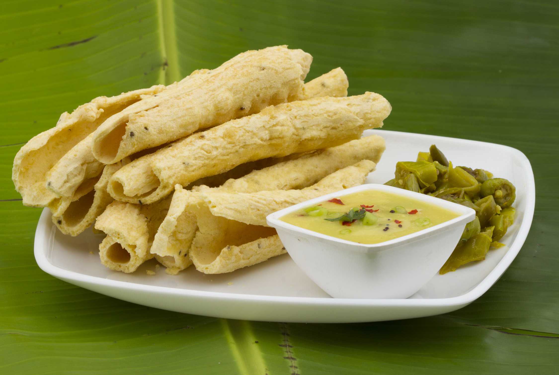 Fafda is a crispy and crunchy traditional snack from the Indian state of Gujarat. It is made using gram flour (besan) mixed with spices and fried into thin, long strips. Fafda is especially popular as a breakfast and festive snack and is commonly served with fried green chilies, raw papaya chutney, and jalebi. Its crunchy texture and savory taste make it a favorite street food and tea-time snack.